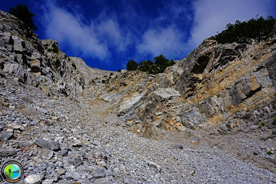 στενό ζωνάρι στο κοφτό.Απέναντι οι κορυφές του Πάγου και του Καλόγερου